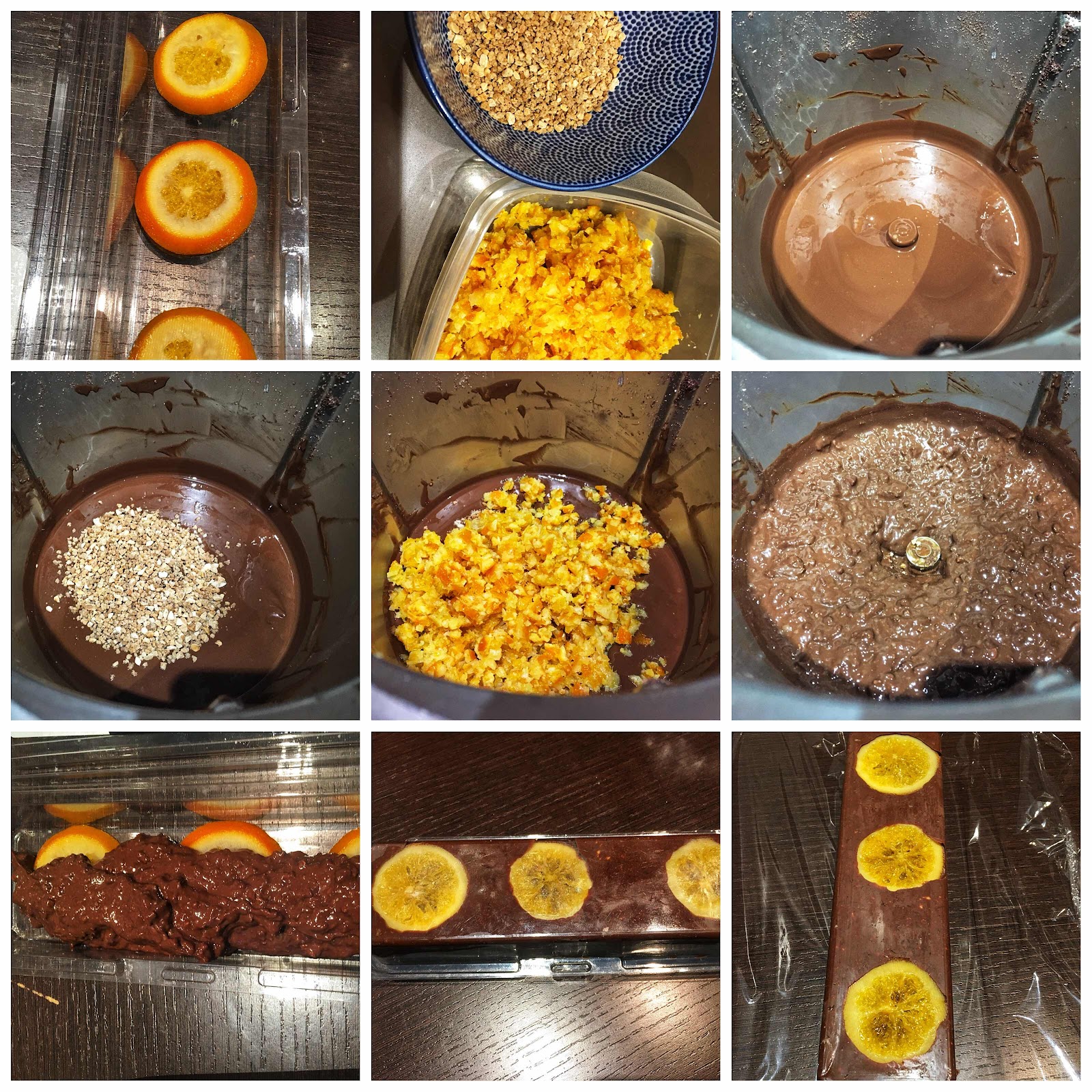 Si te gusta la mandarina confitada también puedes modificar la receta y queda delicioso igualmente, os dejo fotos en formato bombón y tableta para que elijáis vuestra opción.