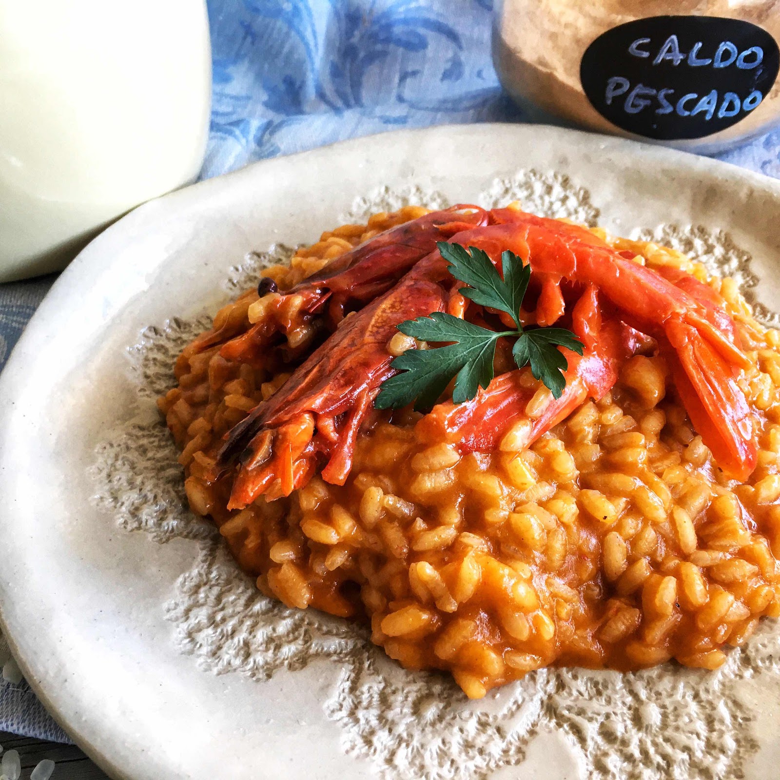 Esta receta la puedes modificar para hacer arroz con bogavante sustituyendo los carabineros, por 1/2 bogavante por persona, el resto todo igual y el resultado delicioso también, aunque es más sabroso a mi gusto el carabinero.